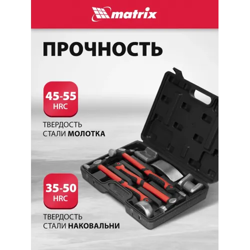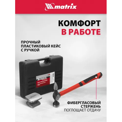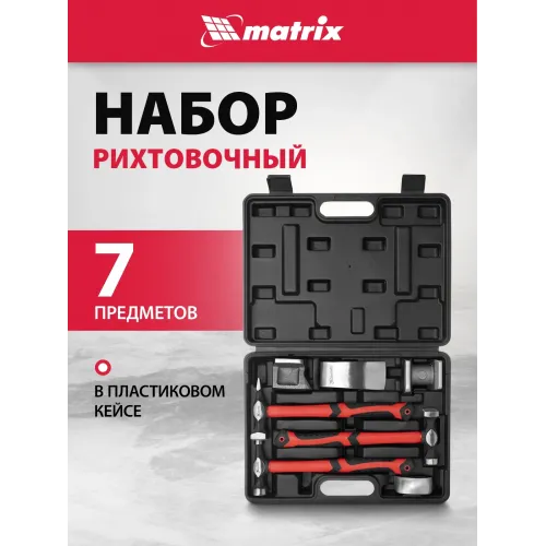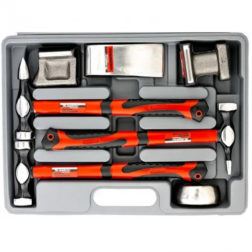 | Особенности | Набор рихтовочный, 3 молотка с фибергласовыми ручками, 4 наковальни, в пласт. боксе. |