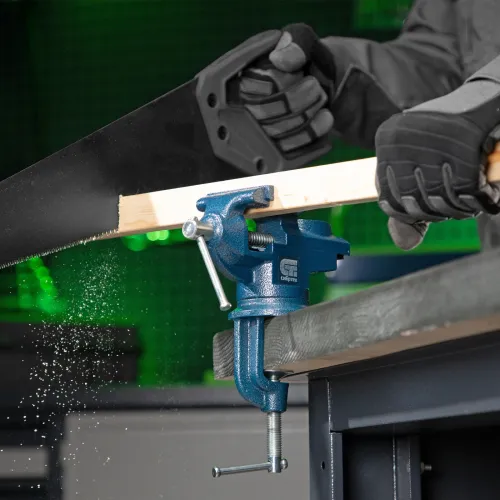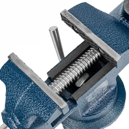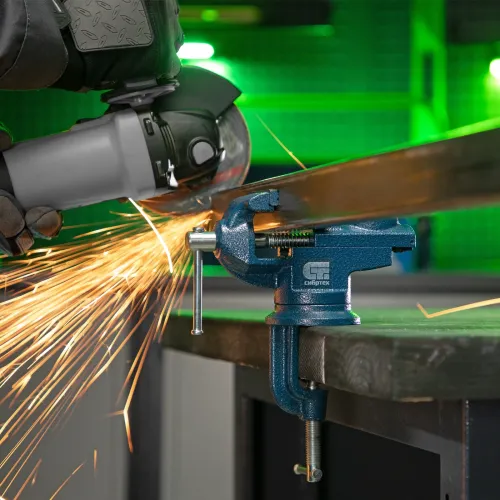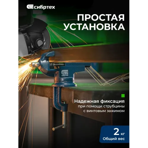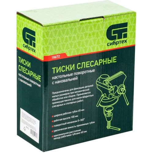 | Описание | Тиски слесарные, настольные, поворотные, ширина рабочих губок 65мм, наковальня// Сибртех |