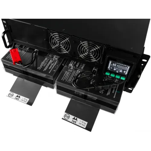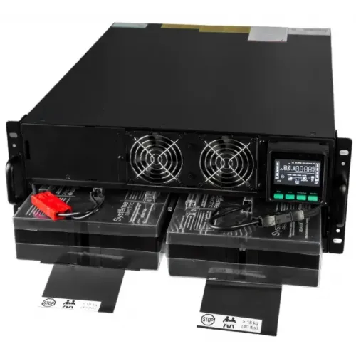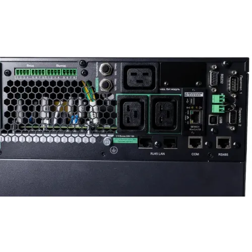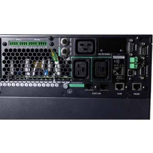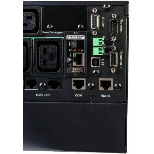 | Особенности | ИБП поддерживает установку до 10 внешних батарейных модулей по 16 АКБ ёмкостью 9 Ач в каждом |