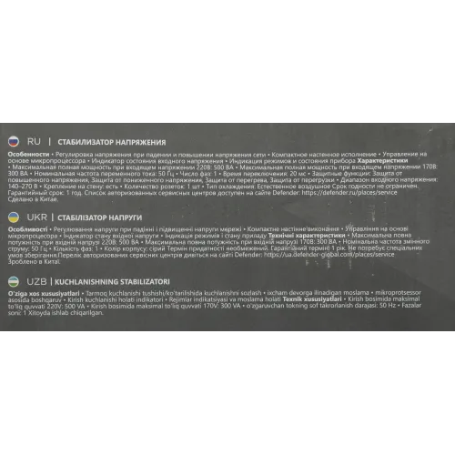 Стабилизатор напряжения Defender ASW 500D 300Вт 500ВА белый