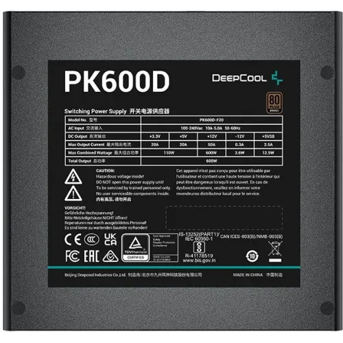 Блок питания Deepcool ATX 600W Game Storm PK600D 80+ bronze (20+4pin) APFC 120mm fan 6xSATA RTL