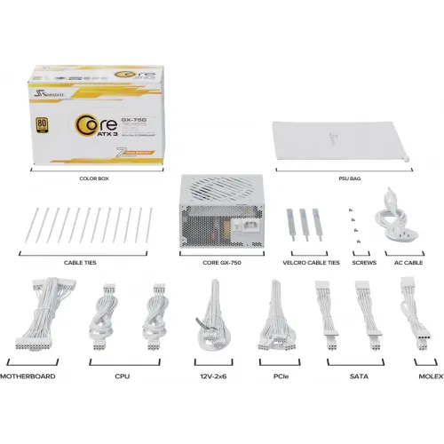 Блок питания Seasonic ATX 750W Core GX-750 White 80+ gold 24pin APFC 120mm fan 8xSATA Cab Manag RTL
