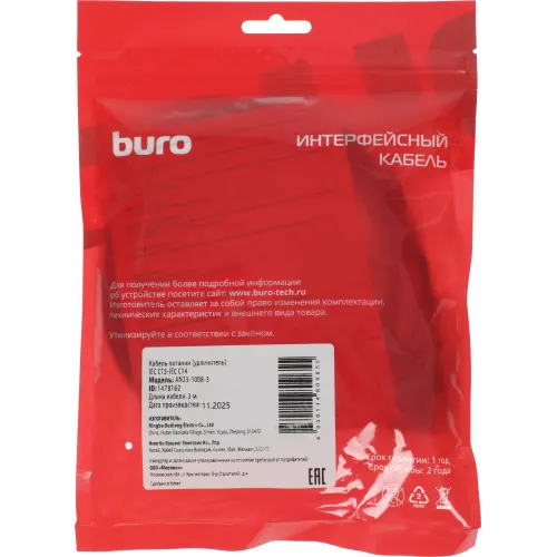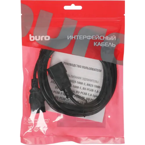 Кабель-удлинитель Buro IEC C13 IEC C14 3м (AN23-1008-3) черный (пакет)