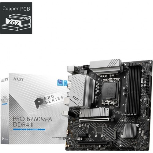 Материнская плата MSI PRO B760M-A DDR4 II Soc-1700 Intel B760 4xDDR4 mATX AC`97 8ch(7.1) 2.5Gg+HDMI+DP