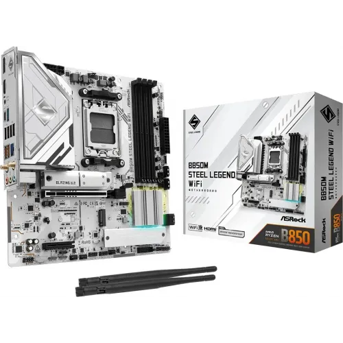 Материнская плата Asrock B850M STEEL LEGEND WIFI Socket AM5 AMD B850 4xDDR5 mATX AC`97 8ch(7.1) 2.5Gg RAID+HDMI+DP