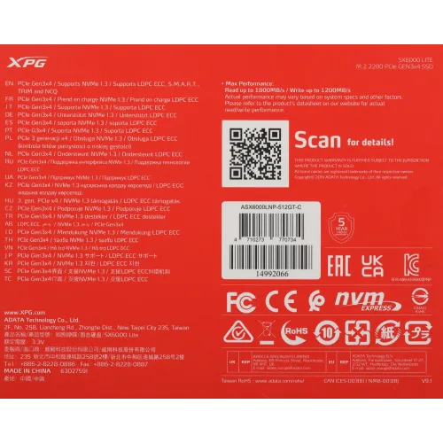 | PartNumber/Артикул Производителя | ASX6000LNP-512GT-C |