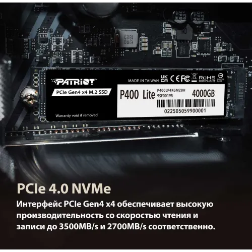 Накопитель SSD Patriot PCIe 4.0 x4 1TB P400LP1KGM28H P400 Lite M.2 2280