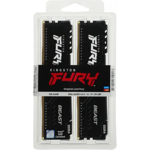Память DDR4 2x4GB 3200MHz Kingston KF432C16BBK2/8 Fury Beast Black RTL Gaming PC4-25600 CL16 DIMM 288-pin 1.35В kit dual rank с радиатором Ret