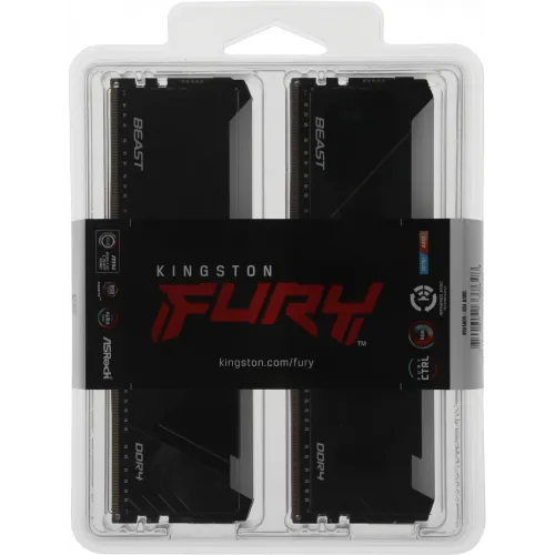 Память DDR4 4x8GB 2666MHz Kingston KF426C16BB2AK4/32 Fury Beast Black RGB RTL Gaming PC4-21300 CL16 DIMM 288-pin 1.2В single rank с радиатором Ret