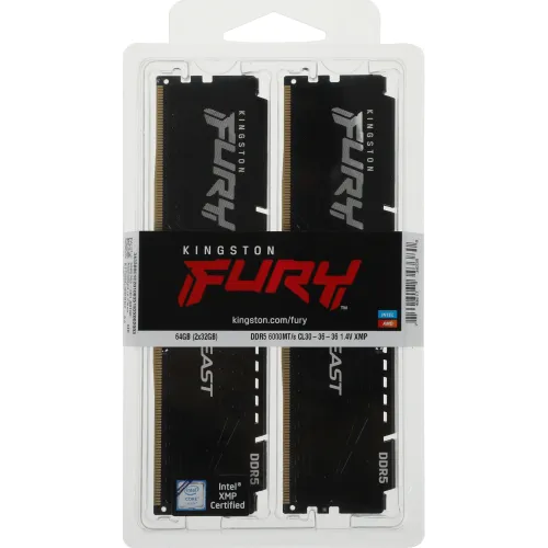 Память DDR5 2x32GB 6000MHz Kingston KF560C30BBK2-64 Fury Beast RTL Gaming PC5-48000 CL30 DIMM 288-pin 1.4В kit single rank с радиатором Ret