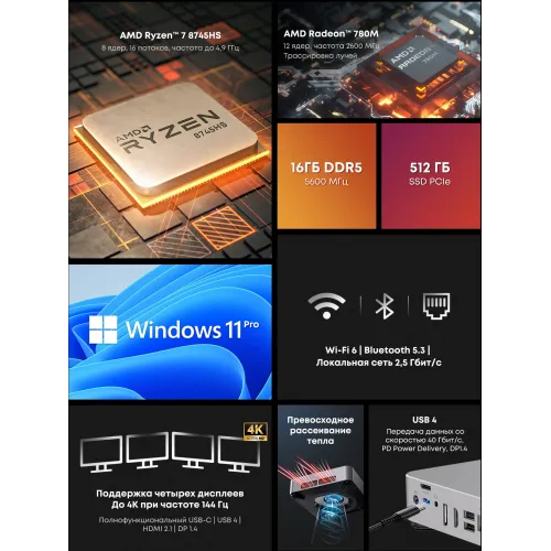 | Процессор | AMD Ryzen 7 8745HS 3.8ГГц |