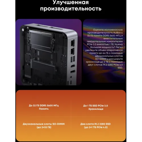 ПК Мини Chuwi AuBox Ryzen 7 8745HS (3.8) 16Gb SSD512Gb 780M Windows 11 Pro 2x2.5GbitEth WiFi BT 120W серебристый/черный
