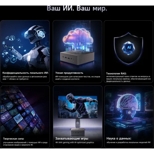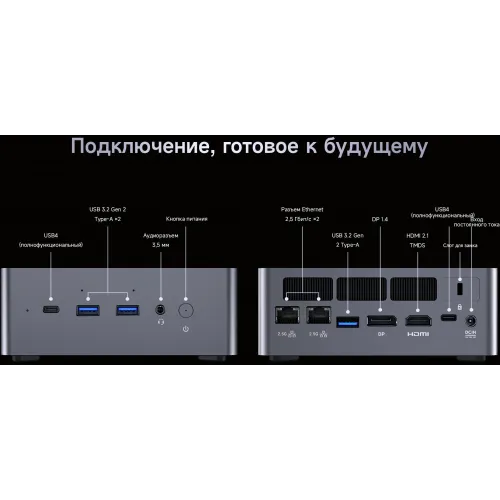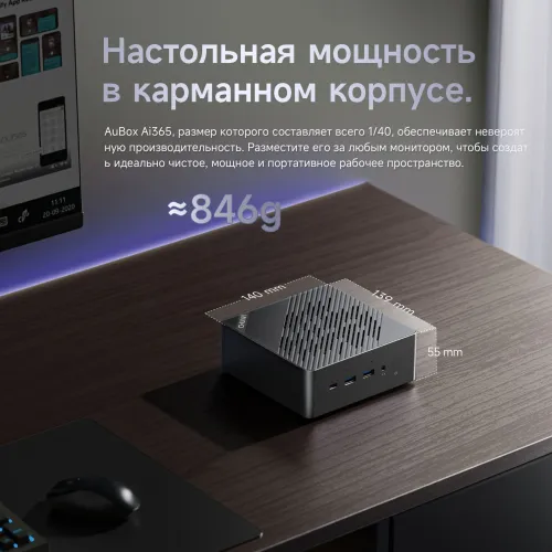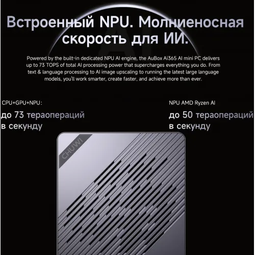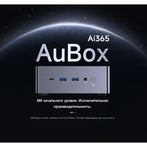 ПК Мини Chuwi AuBox Ryzen AI 9 365 (2) 32Gb SSD1Tb Radeon 880M Windows 11 Pro 2x2.5GbitEth WiFi BT 120W серебристый/черный