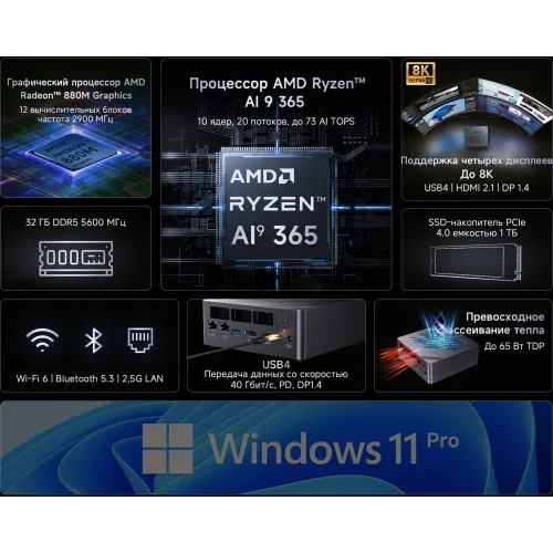 | Процессор | AMD Ryzen AI 9 365 2ГГц |
