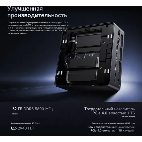 | Описание возможностей апгрейда | 1x M.2 (PCIe 4.0 ?4, M.2 22800 до 1 Тб |