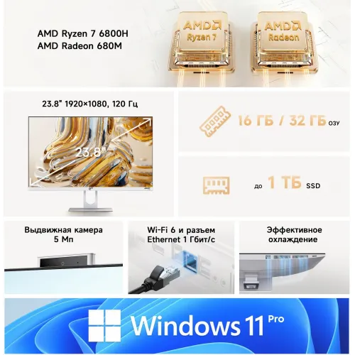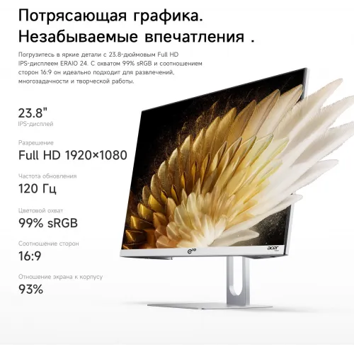 Моноблок Acer Gadget E10 ERAIO 23.8" Full HD Ryzen 7 6800H (3.2) 16Gb SSD512Gb 680M Windows 11 Pro GbitEth WiFi BT 120W Cam белый/серебристый 1920x1080
