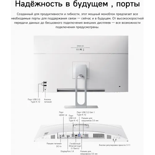 Моноблок Acer Gadget E10 ERAIO 23.8" Full HD Ryzen 7 6800H (3.2) 32Gb SSD1Tb 680M Windows 11 Pro GbitEth WiFi BT 120W Cam белый/серебристый 1920x1080