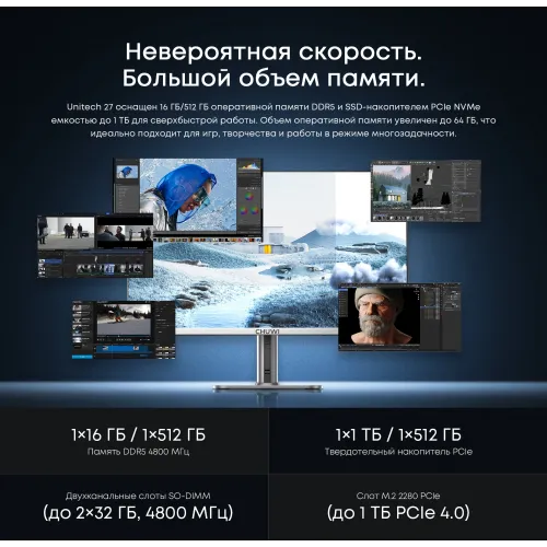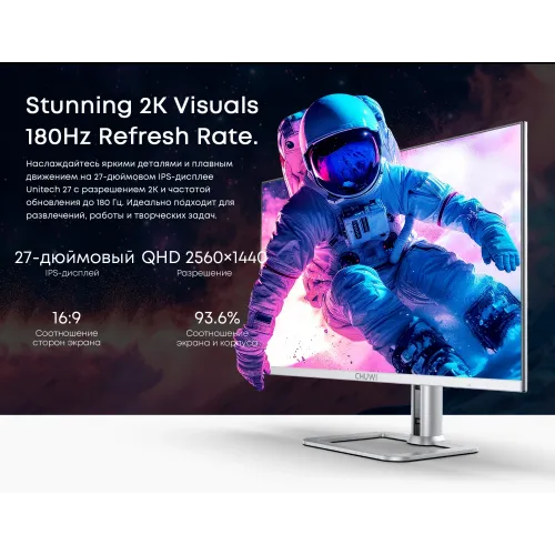 Моноблок Chuwi Unitech 27 27" 2K Ryzen 5 6600H (3.3) 16Gb SSD512Gb 660M Windows 11 Pro GbitEth WiFi BT 48W клавиатура мышь Cam серебристый/черный 2560x1440