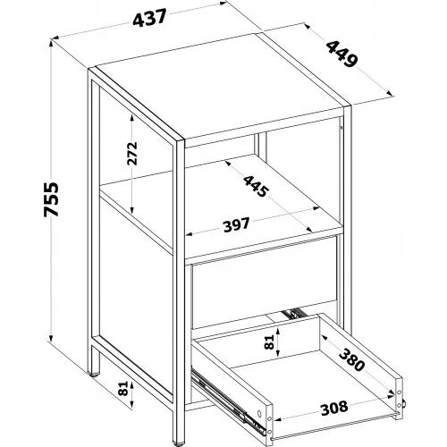 Тумба Сокол КТ-400 приставная 437x449x755мм дуб сонома (00-00016108)