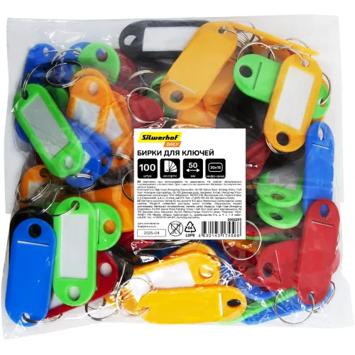Бирка для ключей Silwerhof Daily инфо-окно ассорти (упак.:100шт) пластиковый пакет