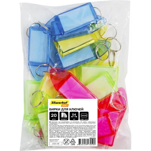 Бирка для ключей Silwerhof Daily инфо-окно ассорти (упак.:20шт) пластиковый пакет