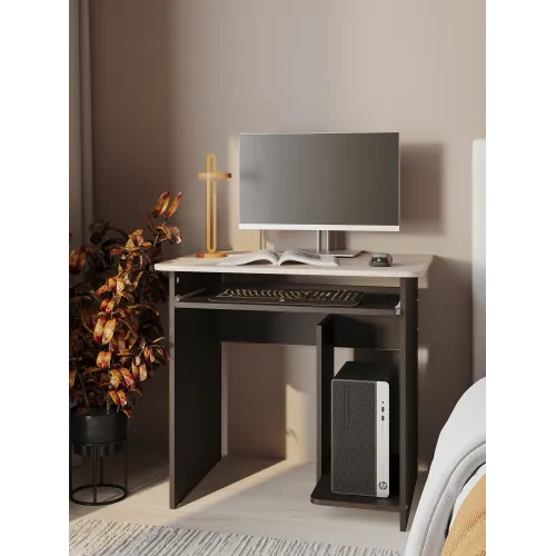 | Особенности | Размеры столешницы — 800 х 600 мм — позволяют установить монитор любой диагонали. Стол оборудован выдвижной полкой для клавиатуры, а в основании с правой стороны расположена ниша под системный блок. |