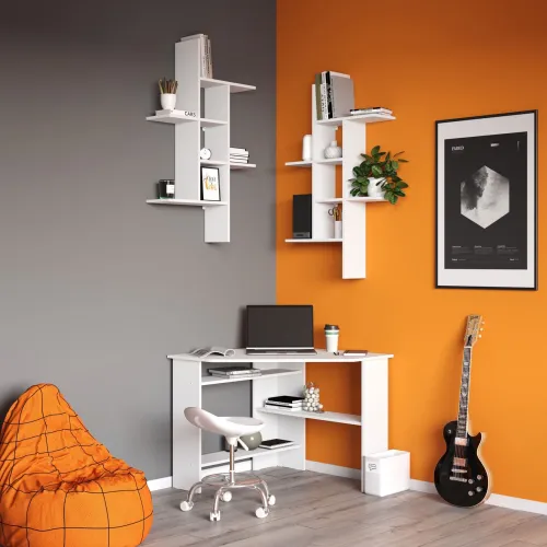 | Особенности | Функциональный вариант обустройства полноценной рабочей или учебной зоны. Просторная столешница разместит монитор или ноутбук, а также всё то, что необходимо держать под рукой для быстрого доступа. Несколько разноплановых полок станут удобной системой хранения книг, бумаг и прочей канцелярии. |