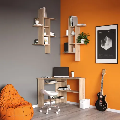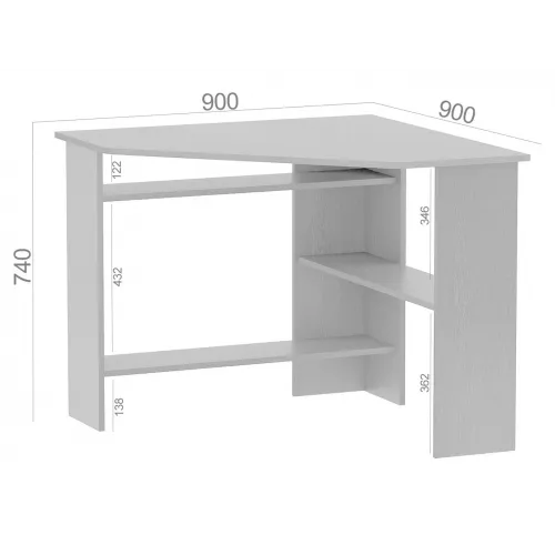 | Особенности | Функциональный вариант обустройства полноценной рабочей или учебной зоны. Просторная столешница разместит монитор или ноутбук, а также всё то, что необходимо держать под рукой для быстрого доступа. Несколько разноплановых полок станут удобной системой хранения книг, бумаг и прочей канцелярии. |