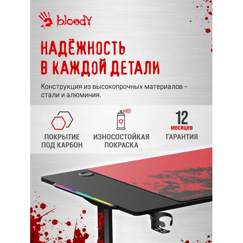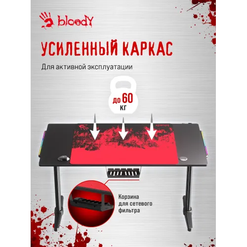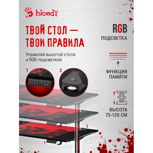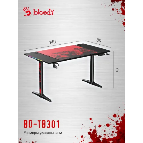 Стол игровой Bloody BD-TB301 электропривод столешница ЛДСП карбон каркас черный 140x80см