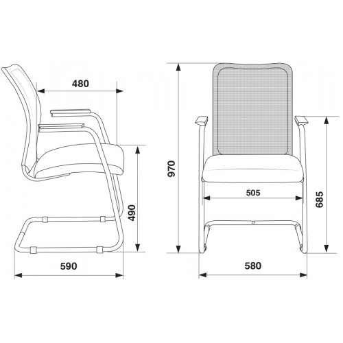 Кресло Бюрократ CH-599AV серый TW-32K03 сиденье черный TW-11 сетка/ткань полозья металл серебристый