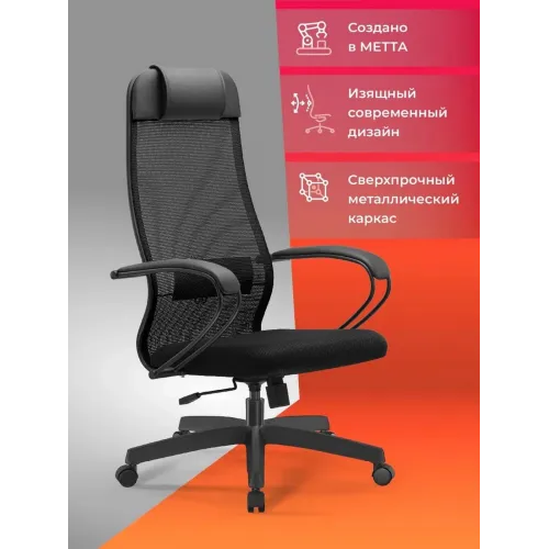 Кресло Метта ErgoLife Set 11 черный сиденье черный сетка с подголов. крестов. металл хром
