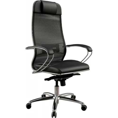 Кресло Метта Samurai SL-1 черный сиденье черный сетка с подголов. крестов. металл хром