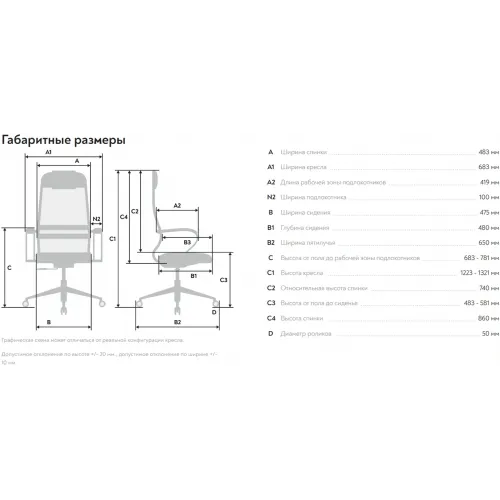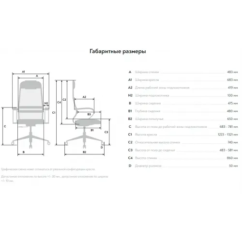 | Высота сиденья MIN | 483 |