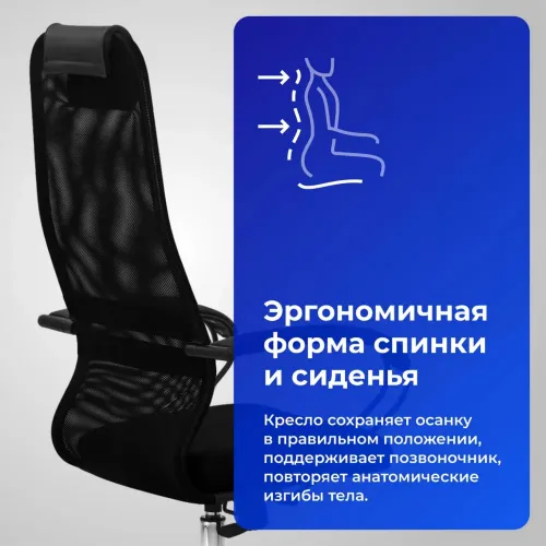 Кресло Метта SU-B-8 черный сиденье черный сетка с подголов. крестов. металл хром
