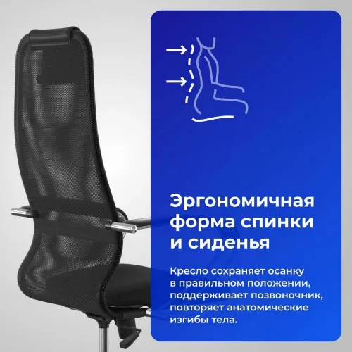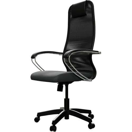 Кресло Метта SU-B-8 черный сиденье черный сетка с подголов. крестов. металл хром