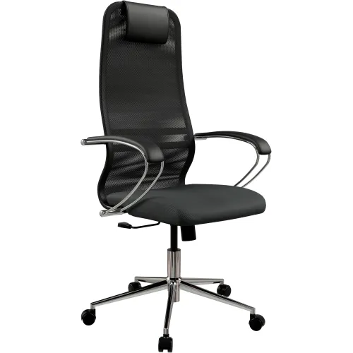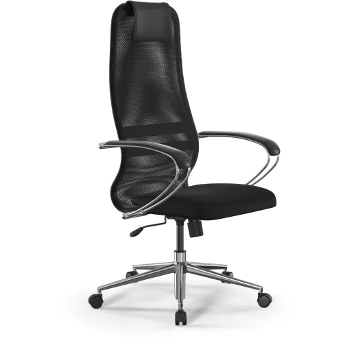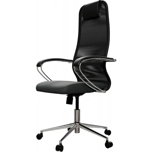 Кресло Метта SU-B-8 черный сиденье черный сетка с подголов. крестов. металл хром