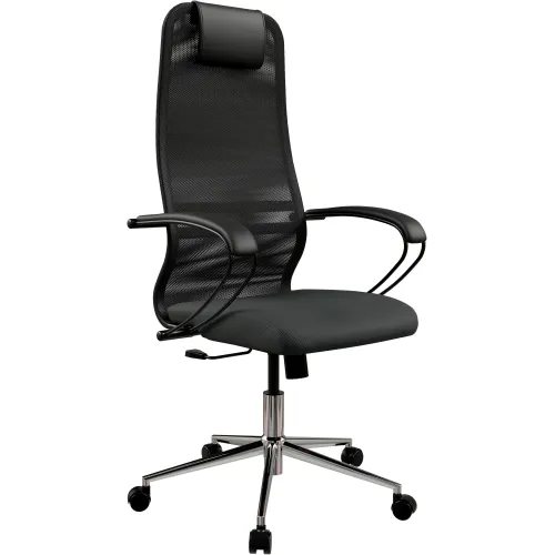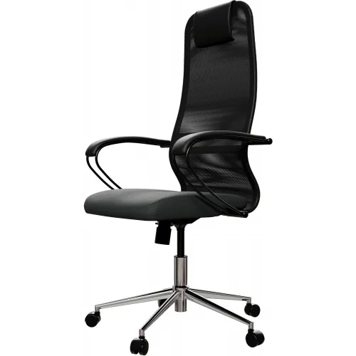 Кресло Метта SU-B-8 черный сиденье черный сетка/ткань с подголов. крестов. металл хром