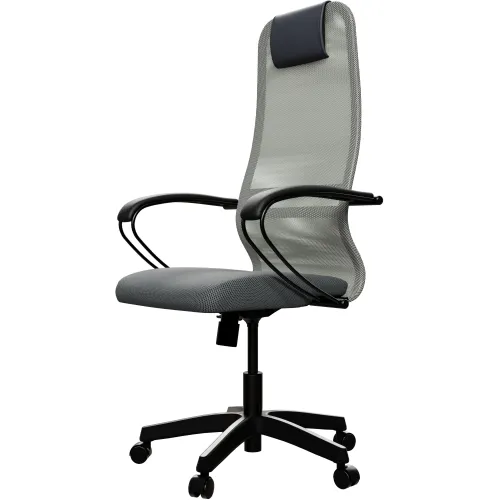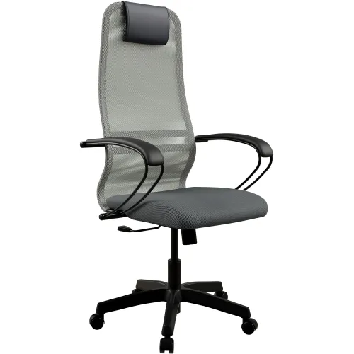 Кресло Метта SU-B-8 светло-серый сиденье светло-серый сетка с подголов. крестов. металл хром
