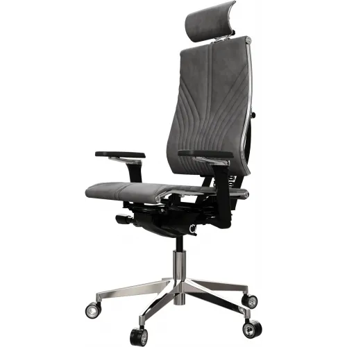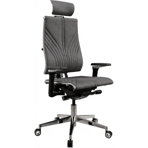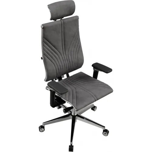 Кресло руководителя эргономичное Метта Yoga 4DF B2-12D - GoyaLE темно-серый сиденье темно-серый велюр с подголов. крестов.5-луч. металл хром