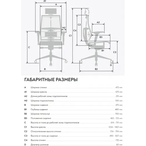 | Ширина спинки | 475 |
