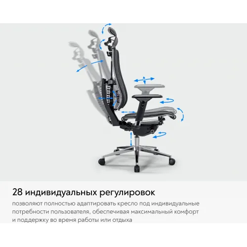 | Регулировка | высоты (газлифт), высоты подголовника, высоты подлокотников, глубины сиденья, жесткости качания, наклона спинки, положения подлокотников, поясничной области, угла наклона подголовника |