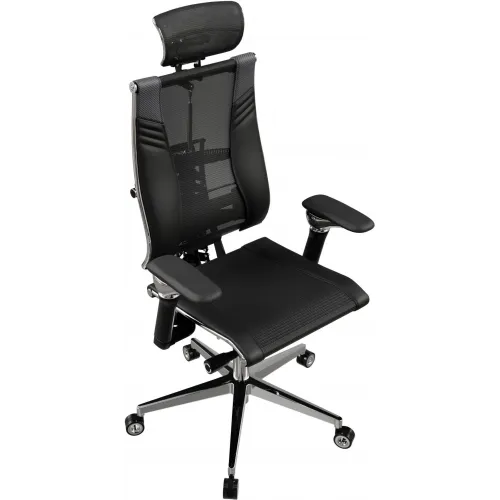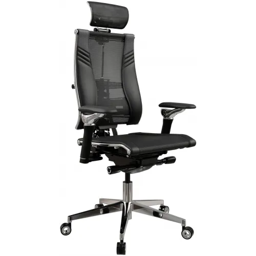 Кресло руководителя эргономичное Метта Yoga Spine Triumph B2 (Черный CC.50.15.13A) Infinity Easy Clean экокожа/сетка с подголов. крестов. алюминий хром