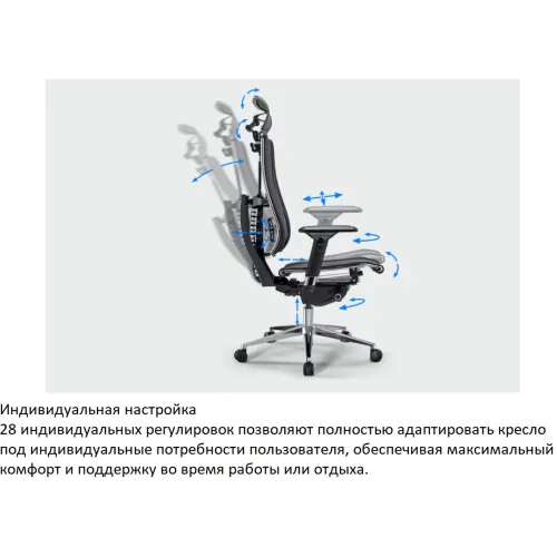 | Регулировка | высоты (газлифт), высоты подголовника, высоты подлокотников, глубины сиденья, жесткости качания, наклона спинки, положения подлокотников, поясничной области, угла наклона подголовника |