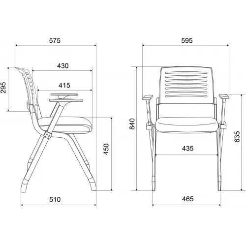 | Ширина с подлокотниками | 595 |