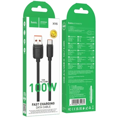 Кабель Hoco X115 51974 USB (m)-USB Type-C (m) 1.2м черный