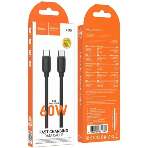 Кабель Hoco X115 51998 USB Type-C (m)-USB Type-C (m) 1.2м черный