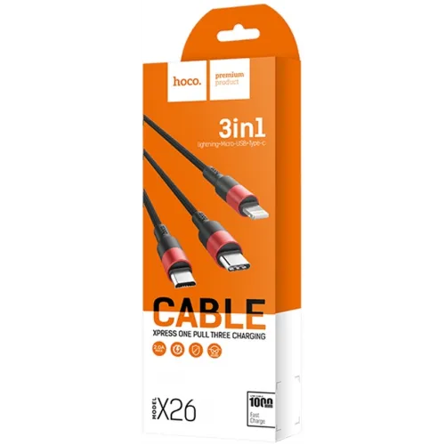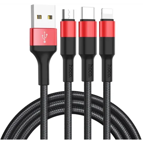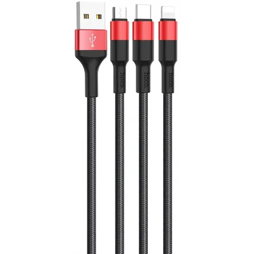 Кабель Hoco X26 Xpress one 80282 USB (m)-Lightning (m)/USB Type-C (m)/micro USB (m) 1м черный/красный