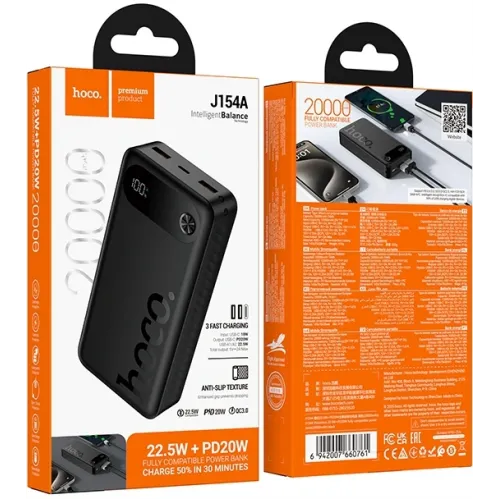 Мобильный аккумулятор Hoco J154A 20000mAh QC3.0/PD 22.5W 3A 2xUSB-A/USB-C черный (60761)