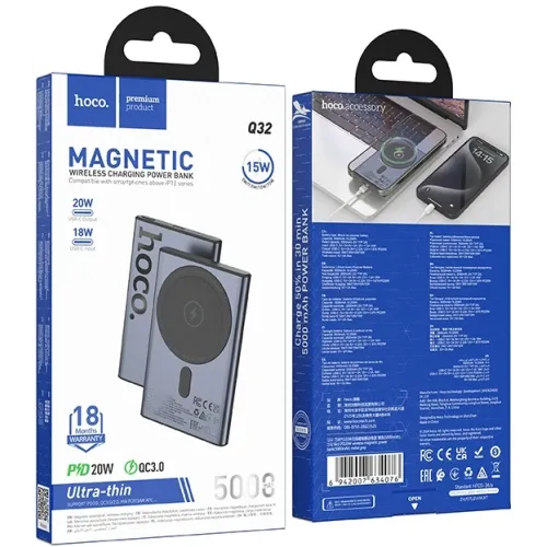 Мобильный аккумулятор Hoco Q32 Bird 5000mAh 15W 3A USB-C беспров.зар. серый (34076)