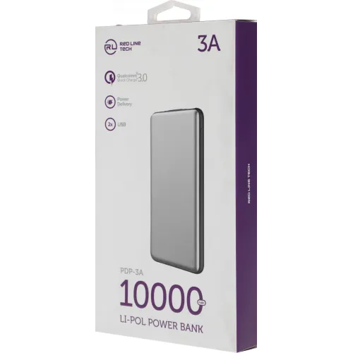 Мобильный аккумулятор Redline PDP-3A 10000mAh 3A 2xUSB-A/USB-C серебристый (УТ000018984)